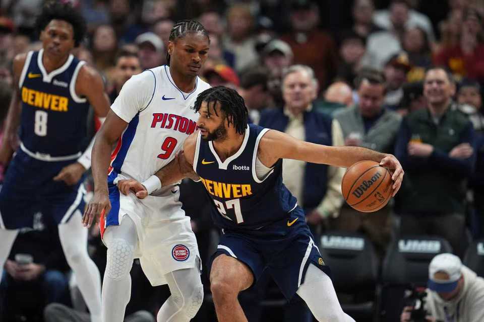 中场休息回来,坎宁安攻传结合引领活塞一波11-4攻势,活塞扩大63-50领先,掘金一波9-0攻势迫近比分。活塞连得6分扩大10分优势,掘金连得5分,活塞多点开花一波10-1攻势,逐步扩大79-65领先优势。掘金一波7-0攻势追分,艾维压哨三分命中,活塞单节30-26净胜4分,三节结束活塞82-72领先掘金。前三节比赛,活塞三分26中6,坎宁安16分9助攻与杜伦14+8,引领5人得分上双;掘金三分24中7,瓦兰12+14与穆雷12+6,引领掘金也5人得分上双。
